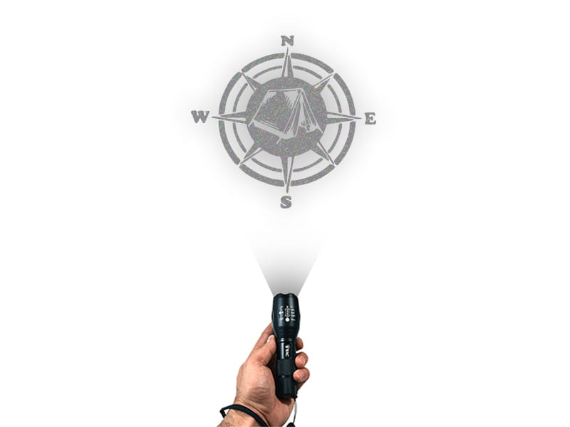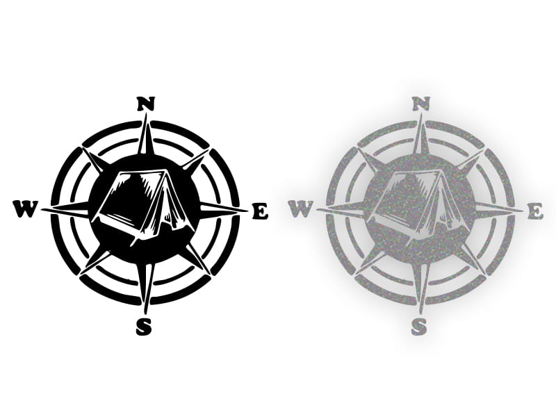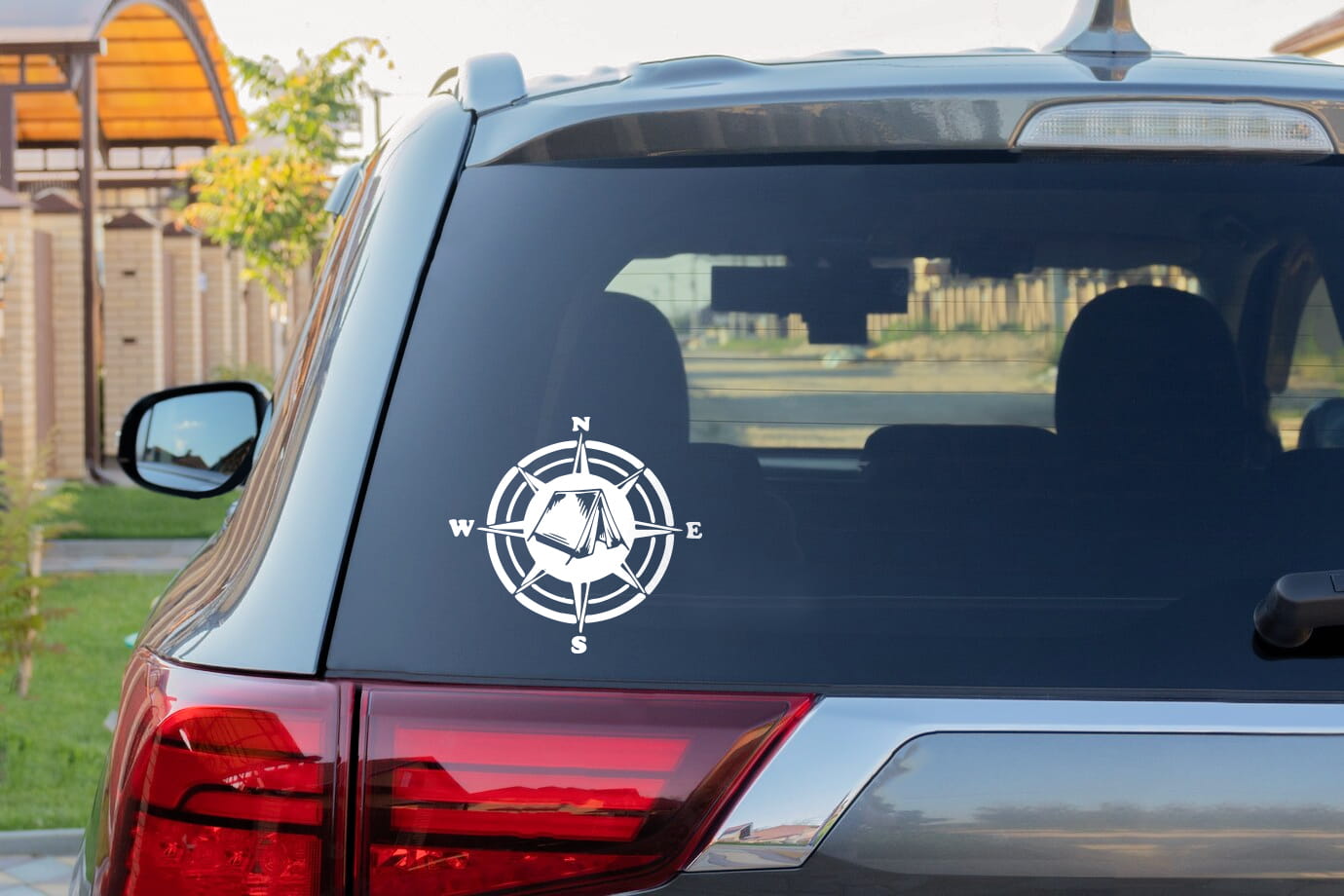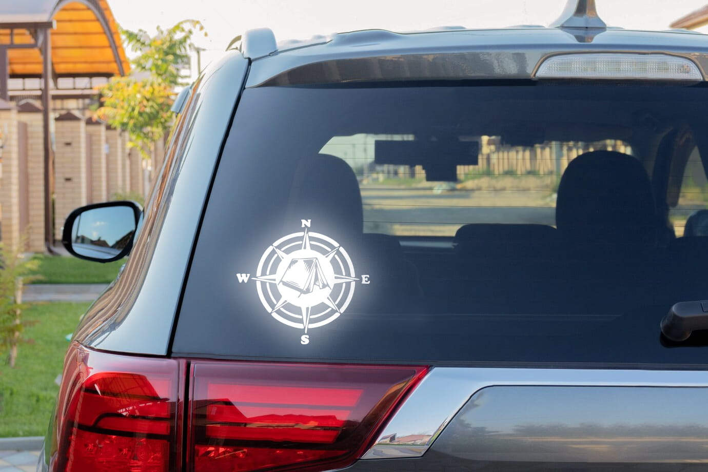 Naklejka Róża Wiatrów NAMIOT na Samochód, Kemping, Kamper ODBLASKOWA