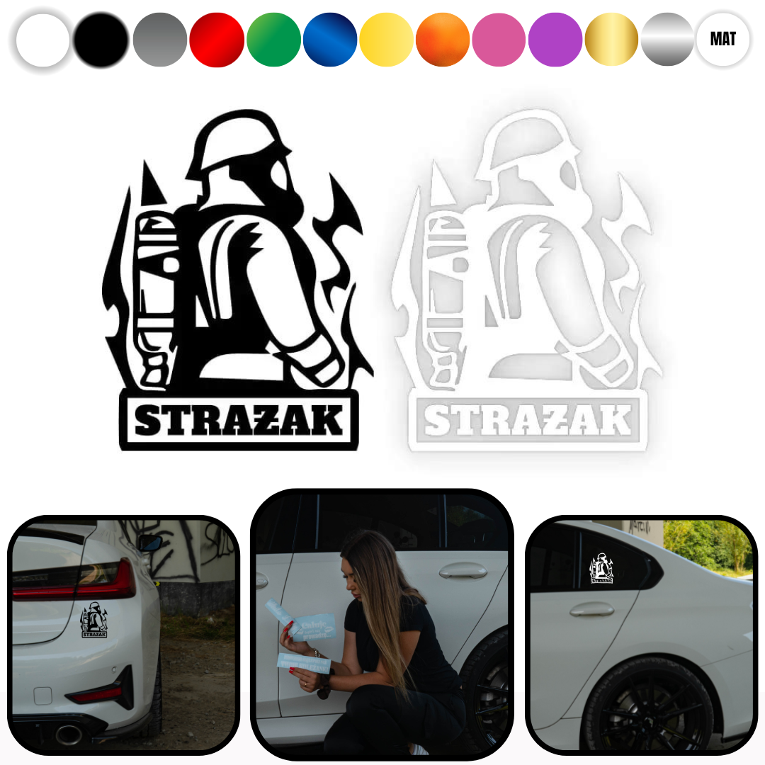 Naklejka Straż STRAŻAK W04 na samochód na auto KOLOR