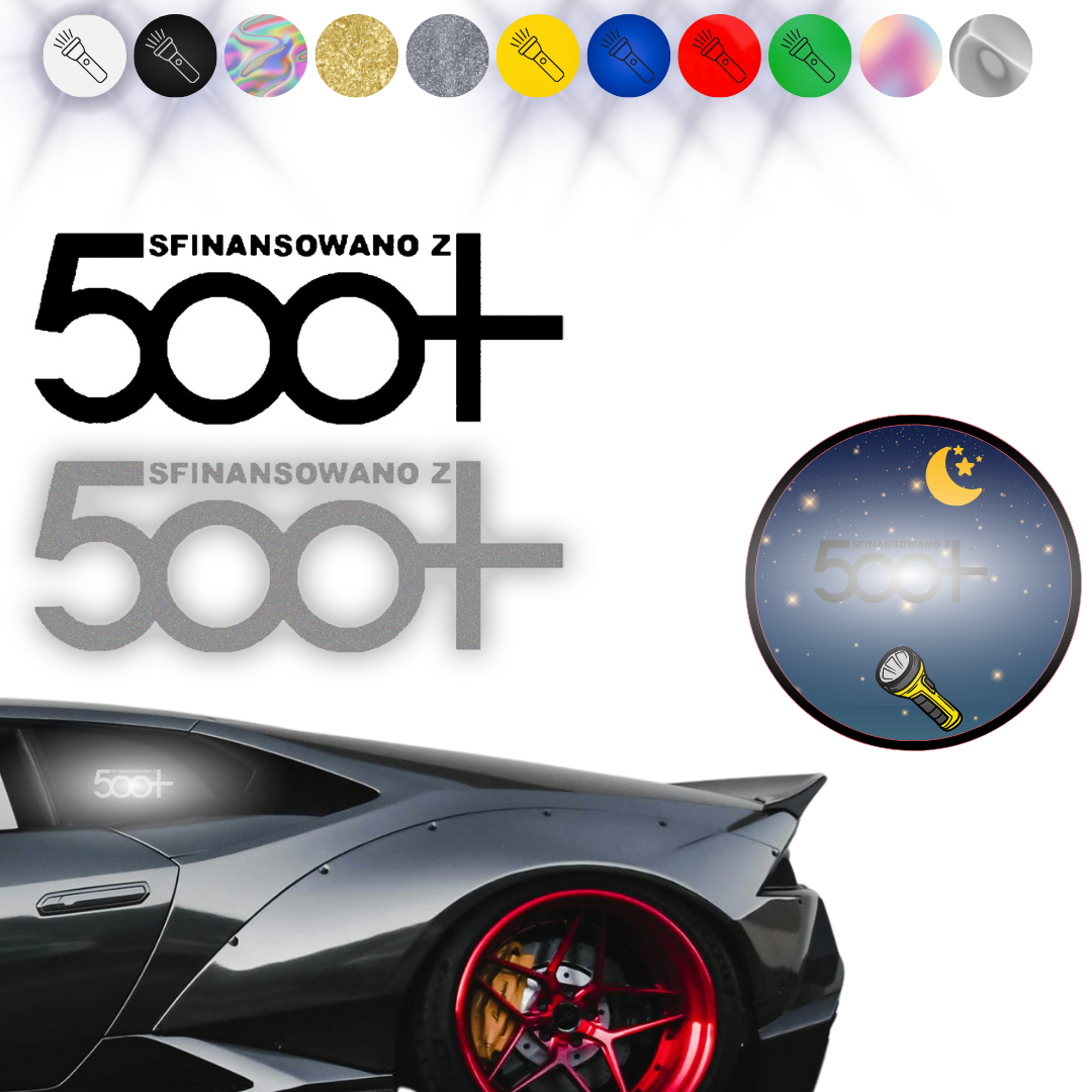 500+ Naklejka ODBLASKOWA Wlepa NA AUTO Odblaskowa