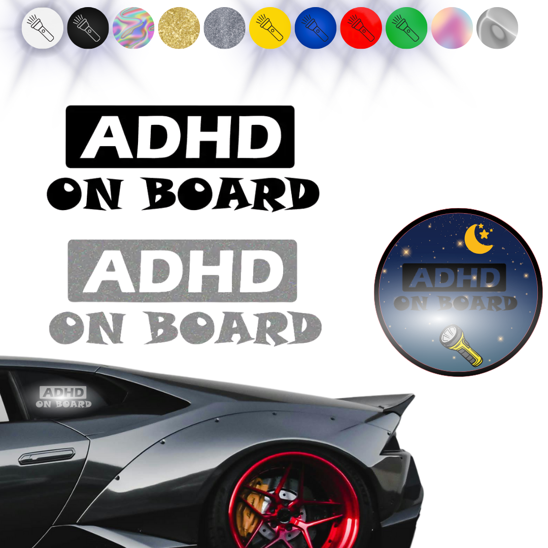 ADHD ON BOARD - Naklejka na samochód na auto ODBLASKOWA