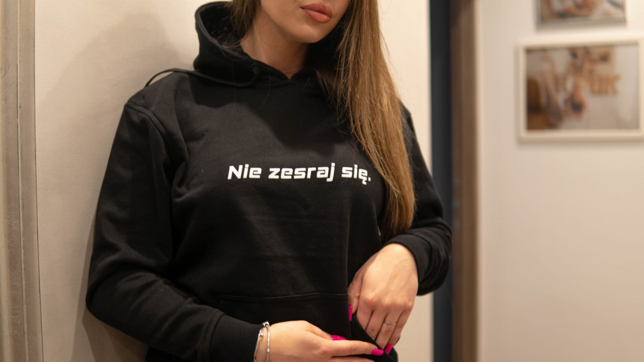 Bluza z napisem „Nie zesraj się” – Styl z humorem i luzem