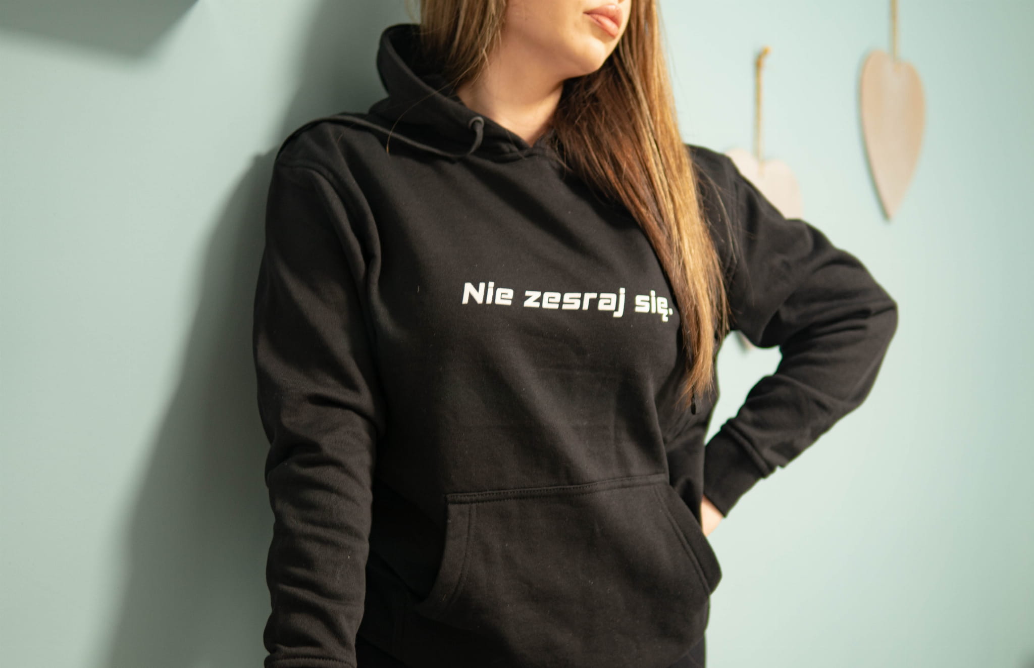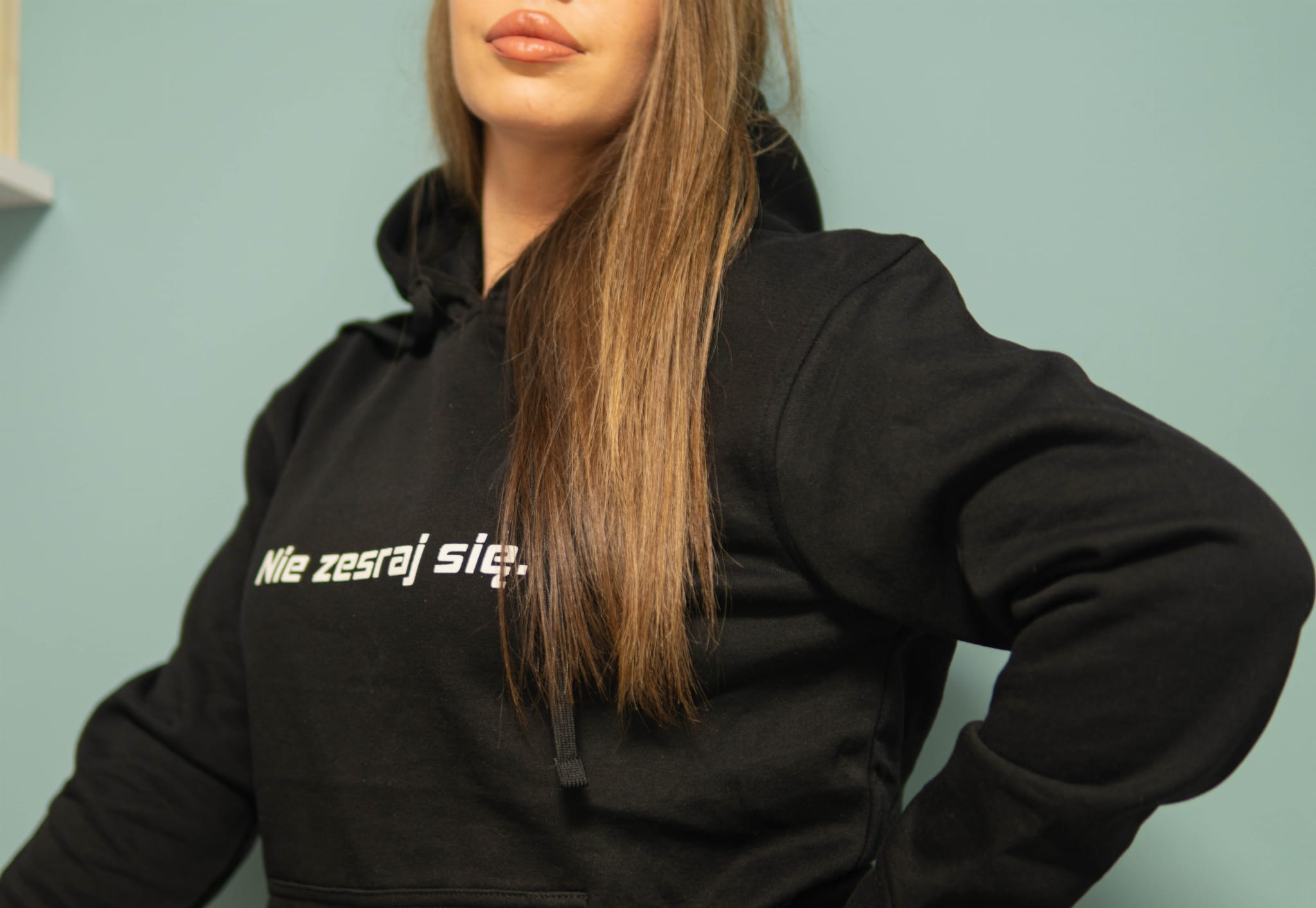 Bluza z napisem „nie zesraj się” lub Własny TEKST – Luz, styl i dystans w jednym!