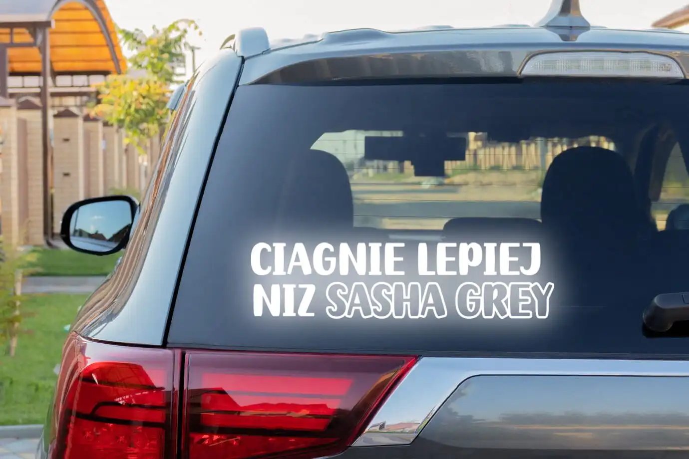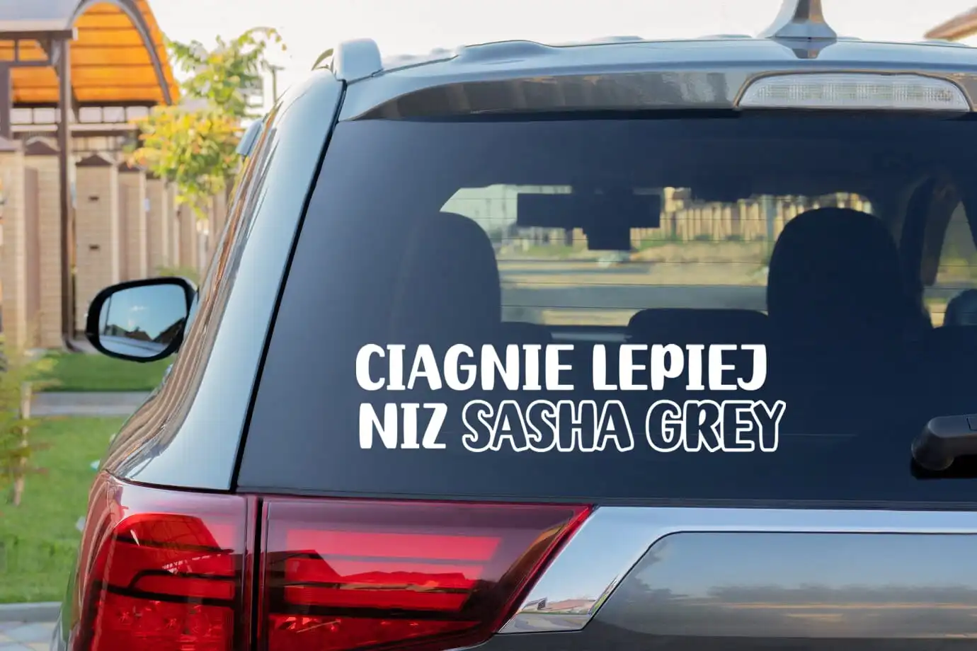 CIĄGNIE LEPIEJ NIŻ SASHA GREY - Naklejka na samochód na auto - ODBLASKOWA