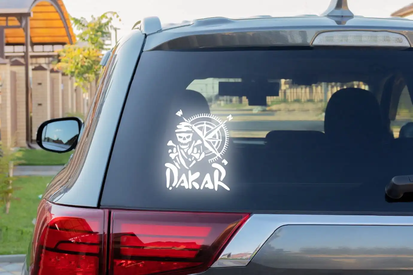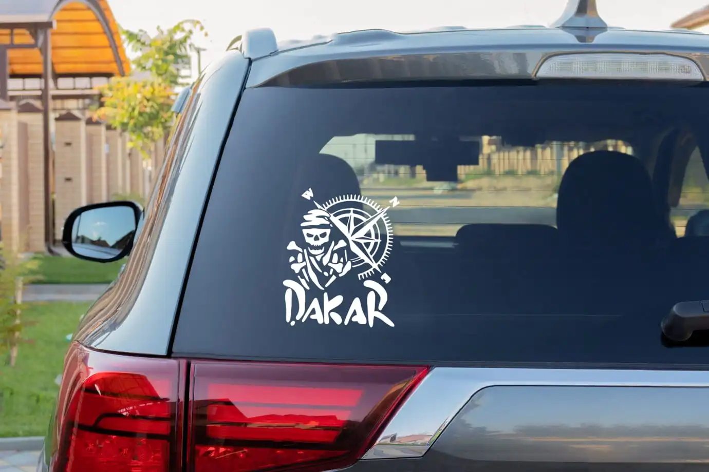 DAKAR z Różą Wiatrów KOMPAS - Naklejka na samochód na auto ODBLASKOWA