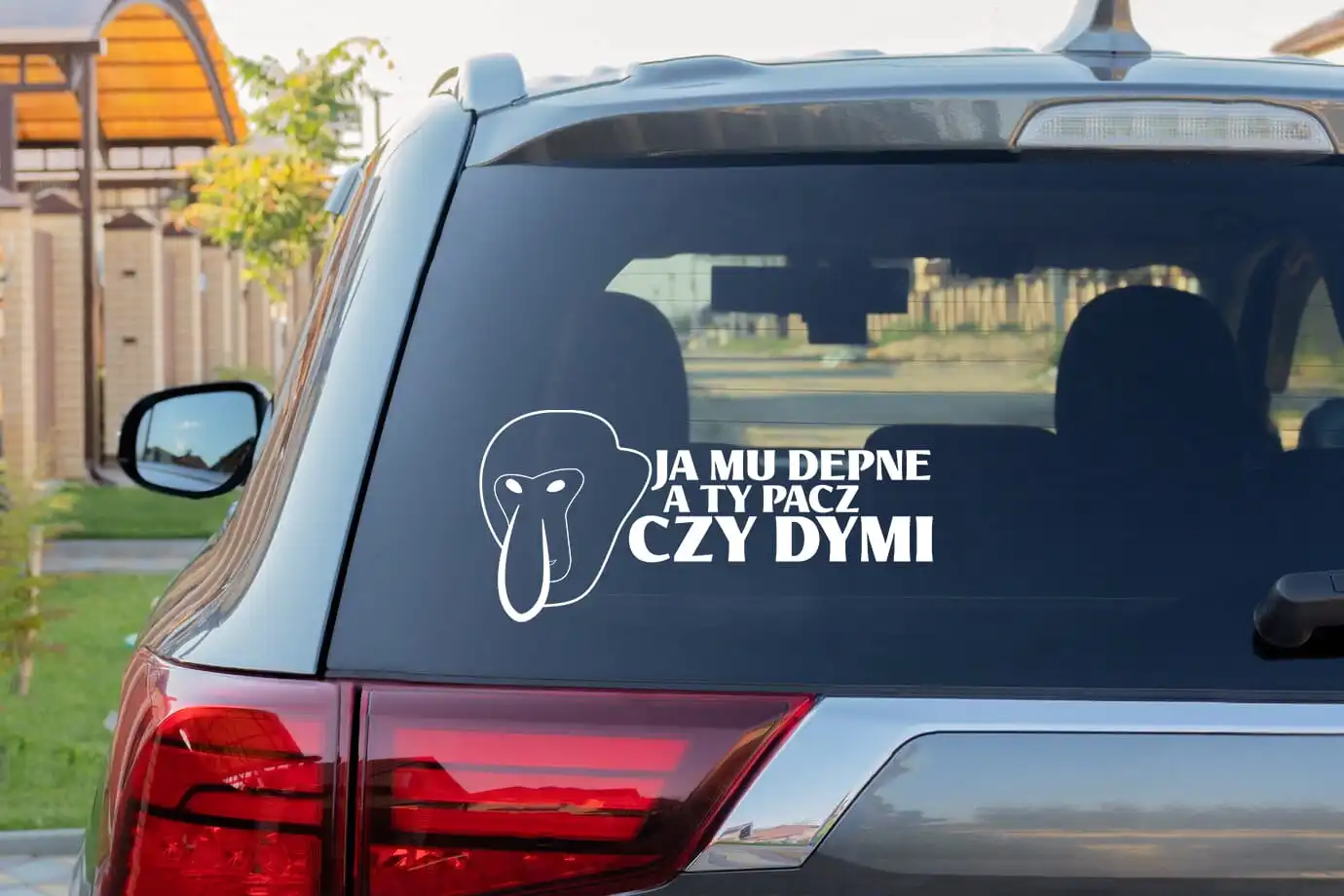 JA MU DEPNE A TY PACZ CZY DYMI - Naklejka NOSACZ JANUSZ na samochód na auto - ODBLASKOWA