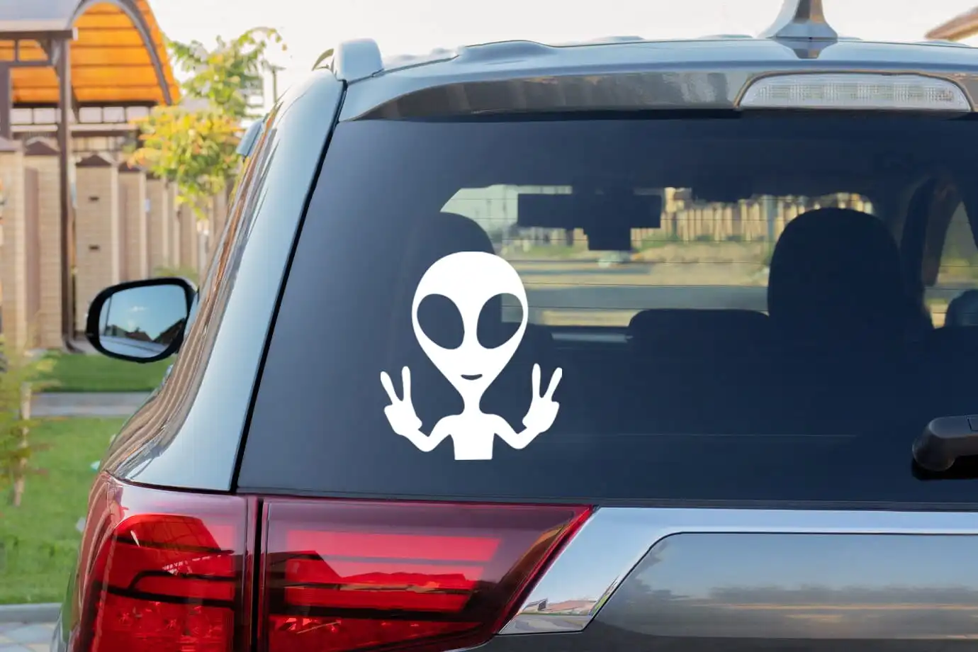 KOSMITA UFOLUDEK OBCY - Naklejka na samochód na auto ODBLASKOWA
