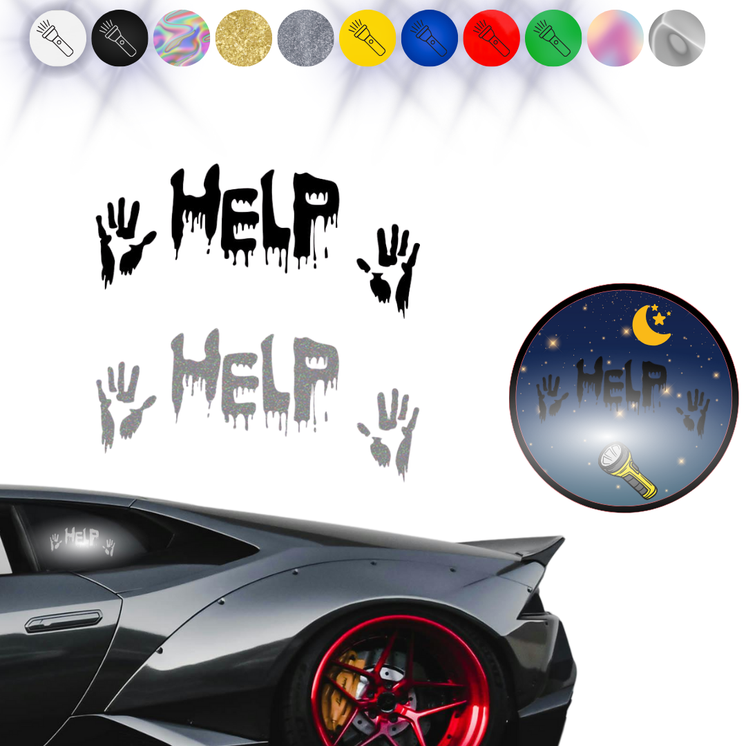 Krwawe ręce HELP - Naklejka na samochód na auto ODBLASKOWA