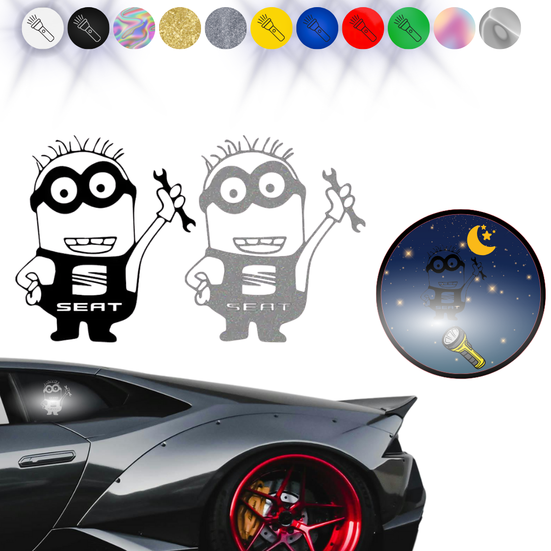 MINIONEK SEAT - Naklejka na samochód na auto - ODBLASKOWA