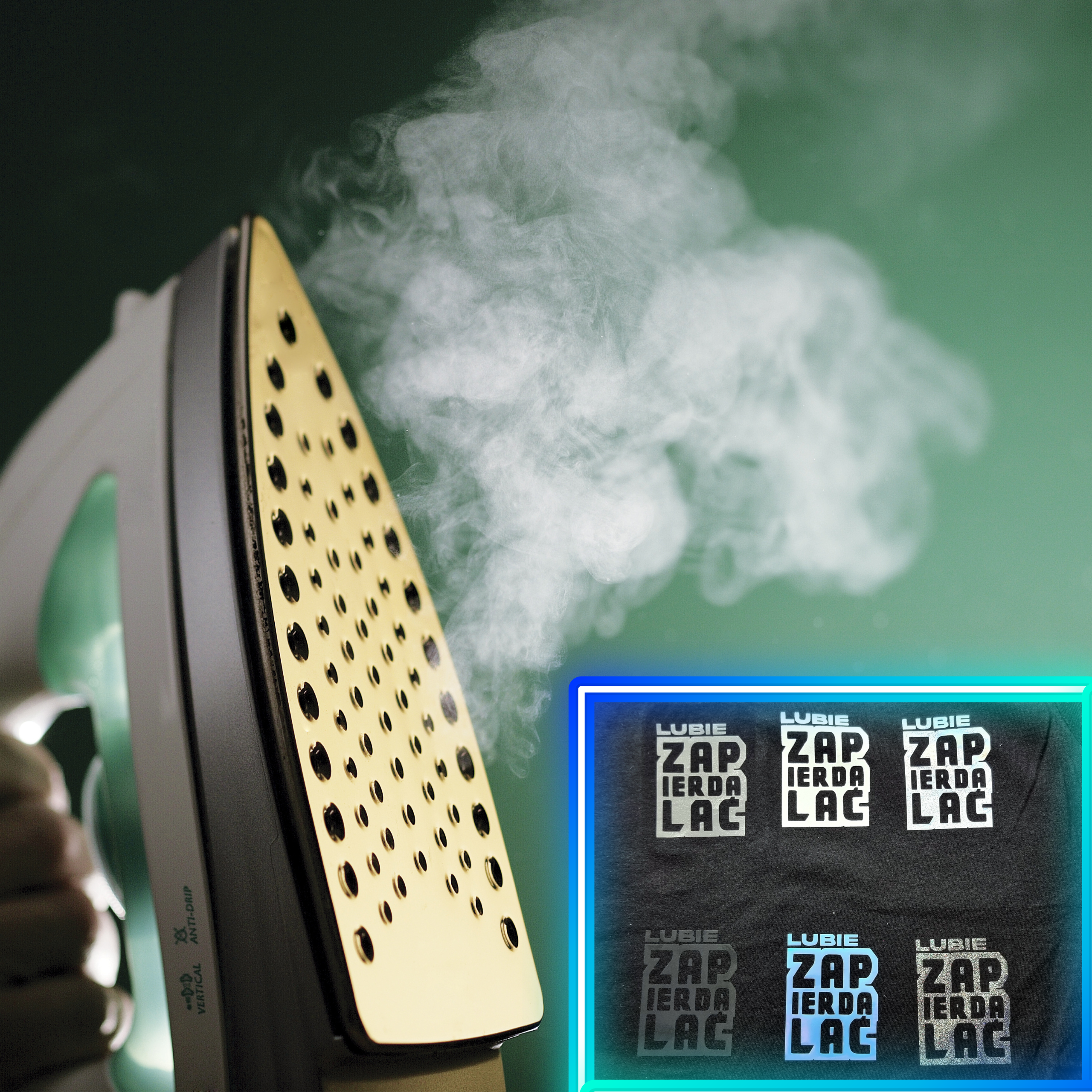 - Prasuj – ustaw żelazko na 170-190°C (bez pary) i dociskaj przez 25-30 sekund.