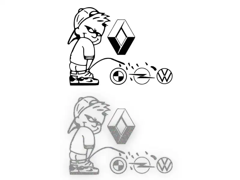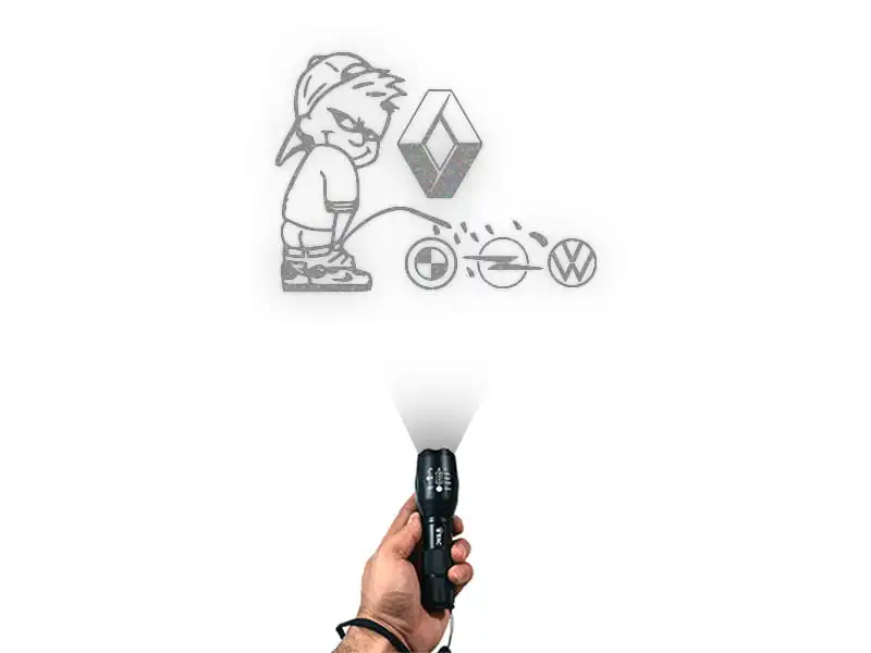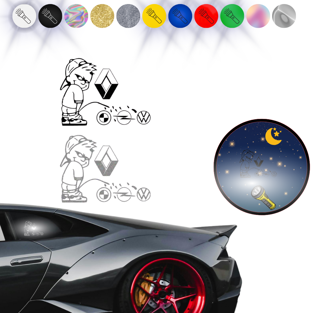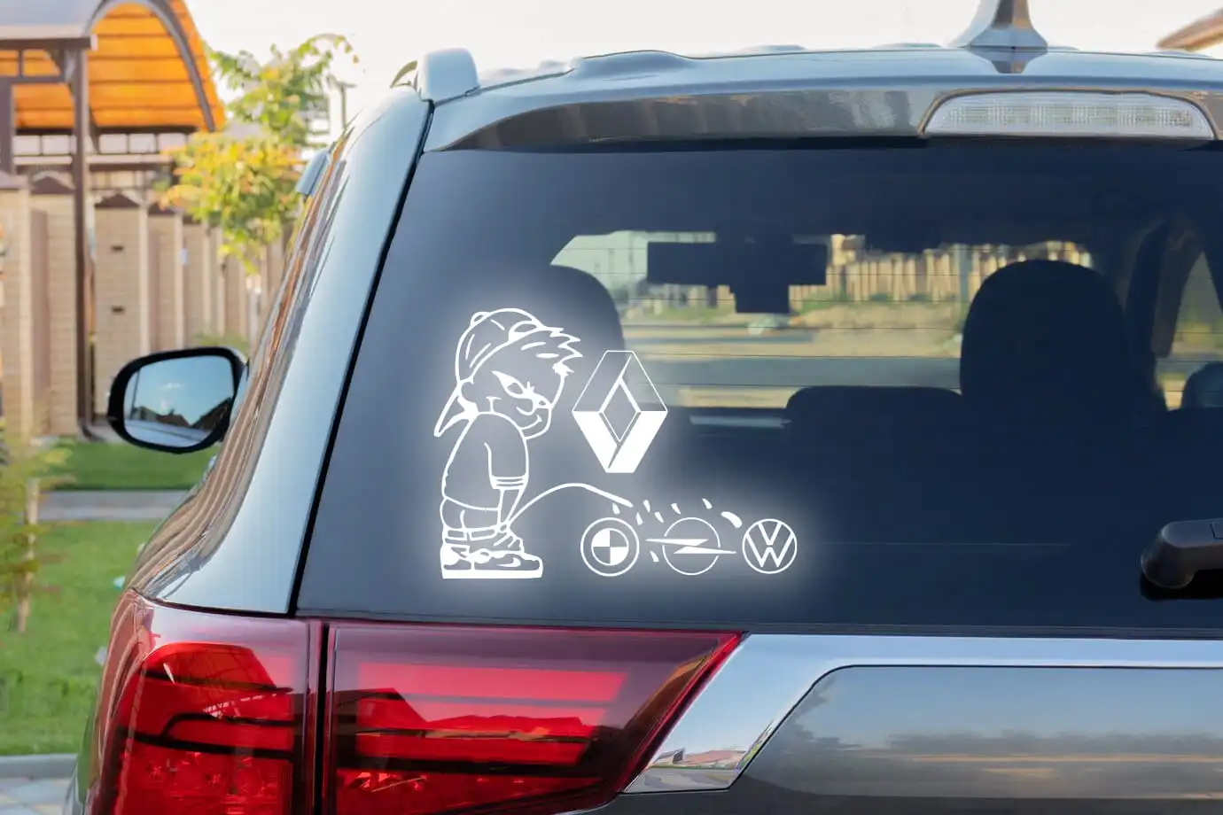 RENAULT LEJE NA BMW OPEL VW - Naklejka na samochód na auto ODBLASKOWA