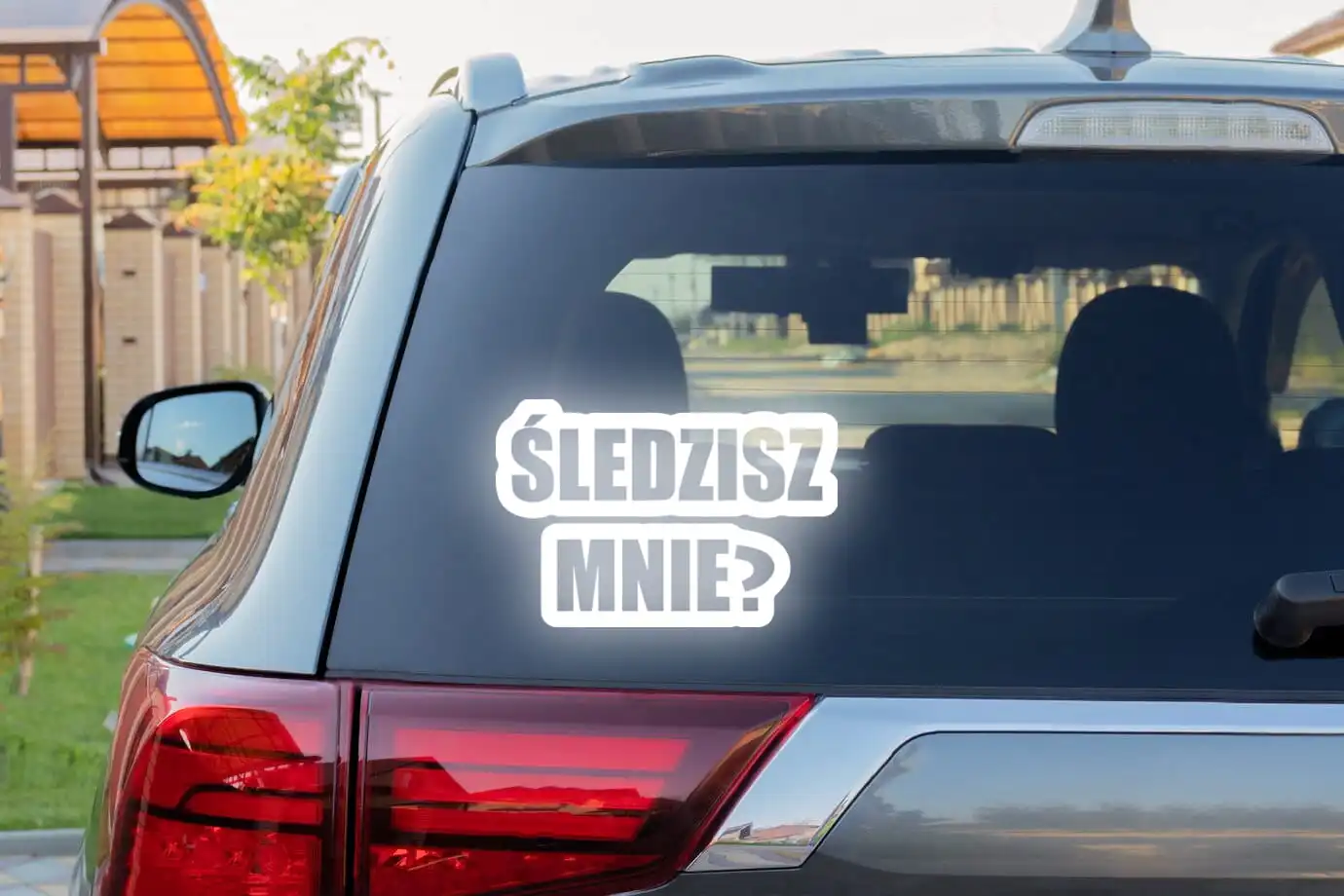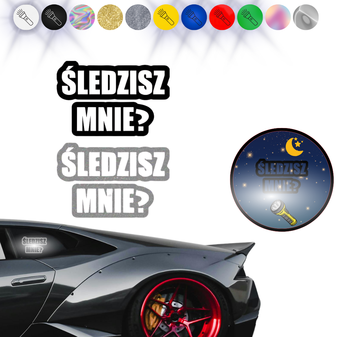 ŚLEDZISZ MNIE? - Naklejka na samochód na auto ODBLASKOWA