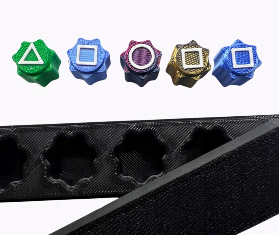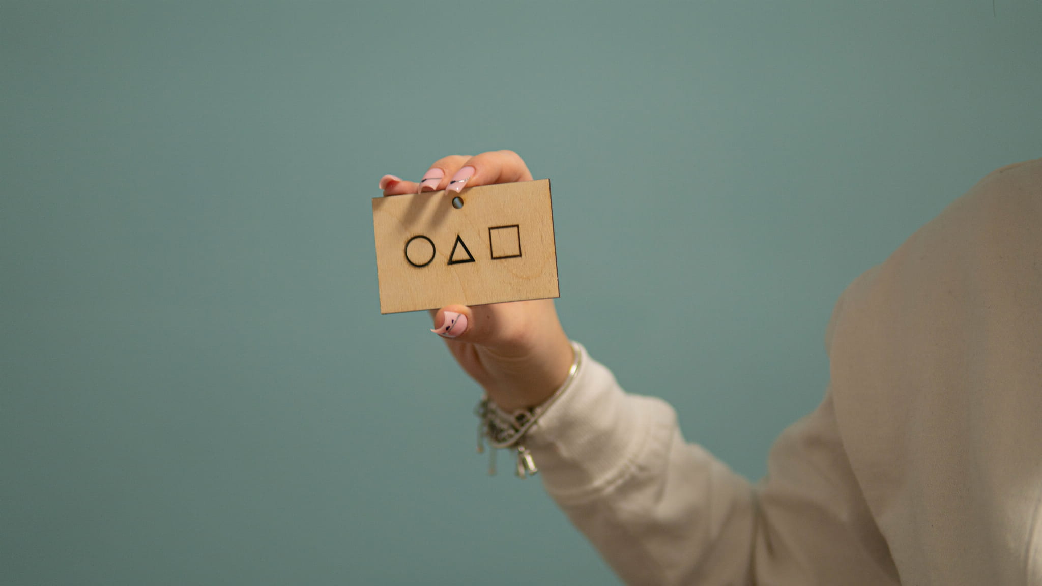 - Unikalne symbole (okrąg, trójkąt, kwadrat) na każdej kostce, nawiązujące do serialu.