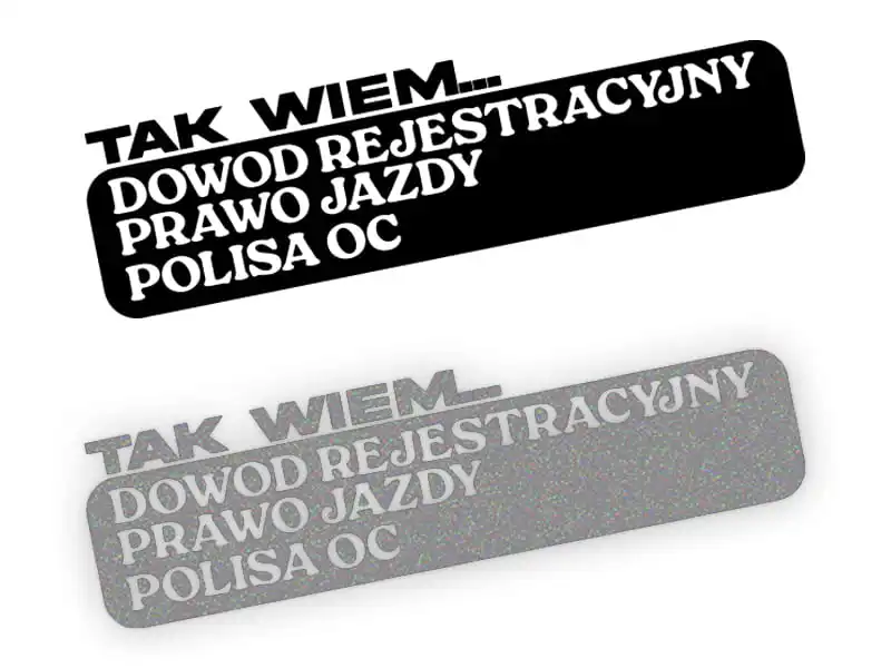 Wpisz numer w wiadomości do sprzedającego, jeżeli nie zostanie dokonany wybór nadamy naklejkę białą - Odblaskową.