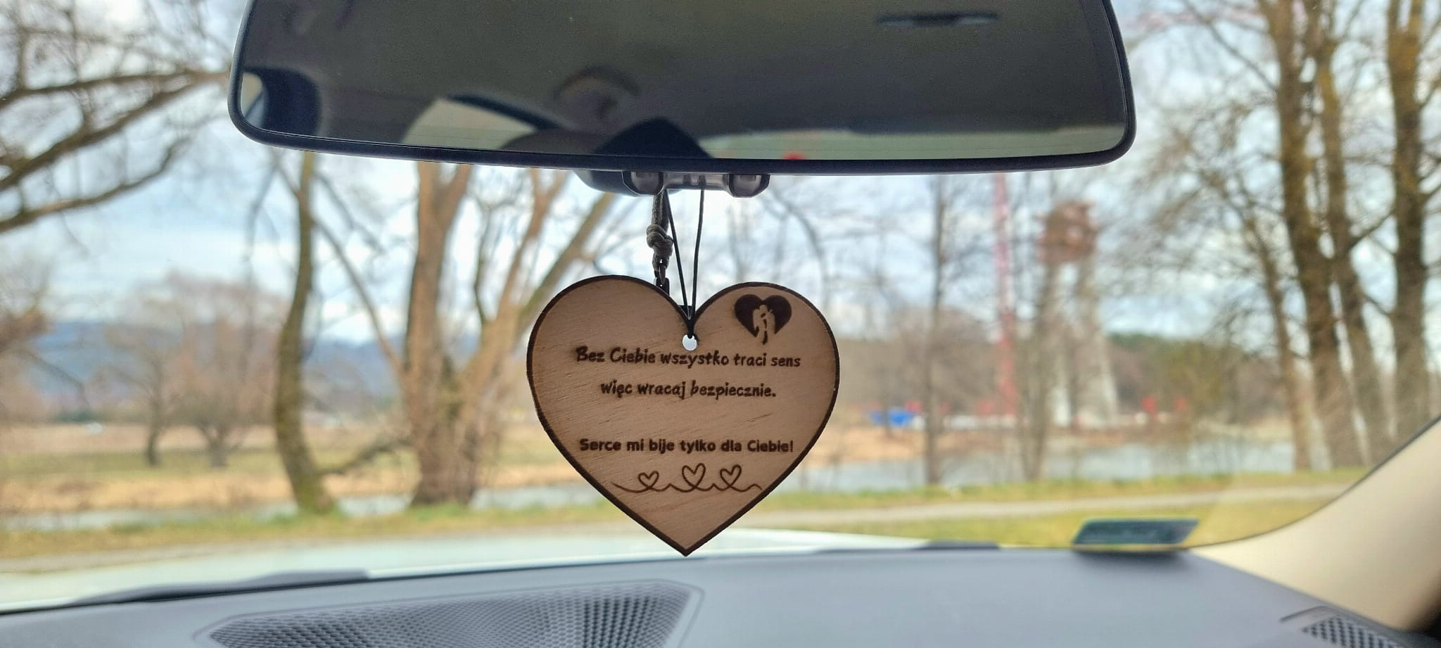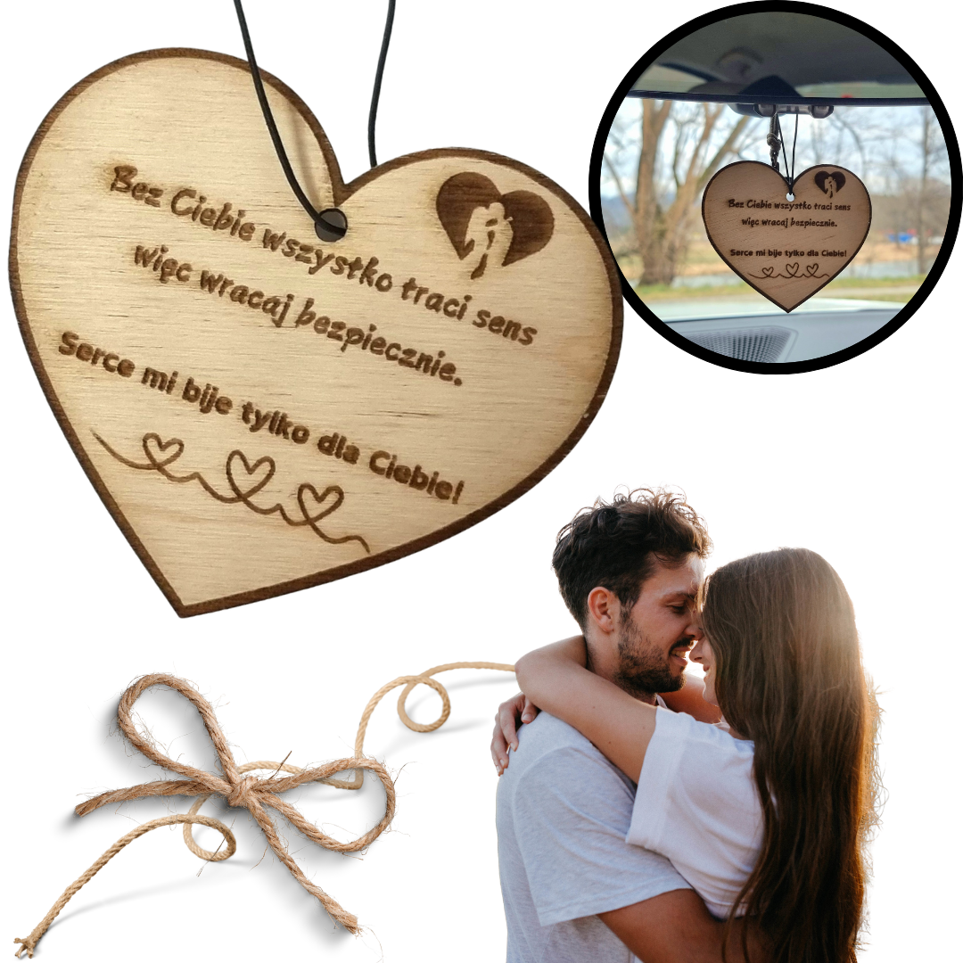 ZAWIESZKA SERCE DO AUTA Z GRAWEREM Bez Ciebie.. - Personalizowany Prezent (W01)