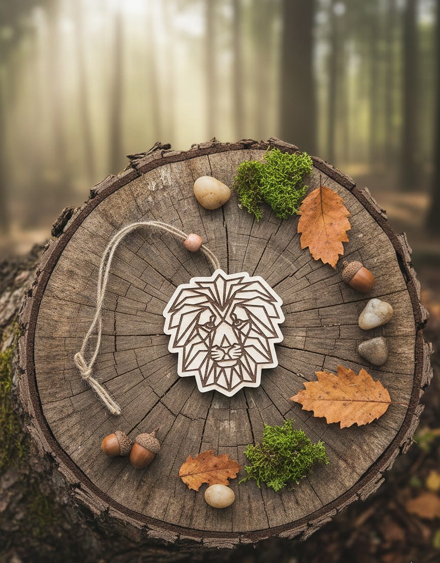Drewniana Zawieszka Zapachowa – Geometryczny Lew (Eco-Friendly)